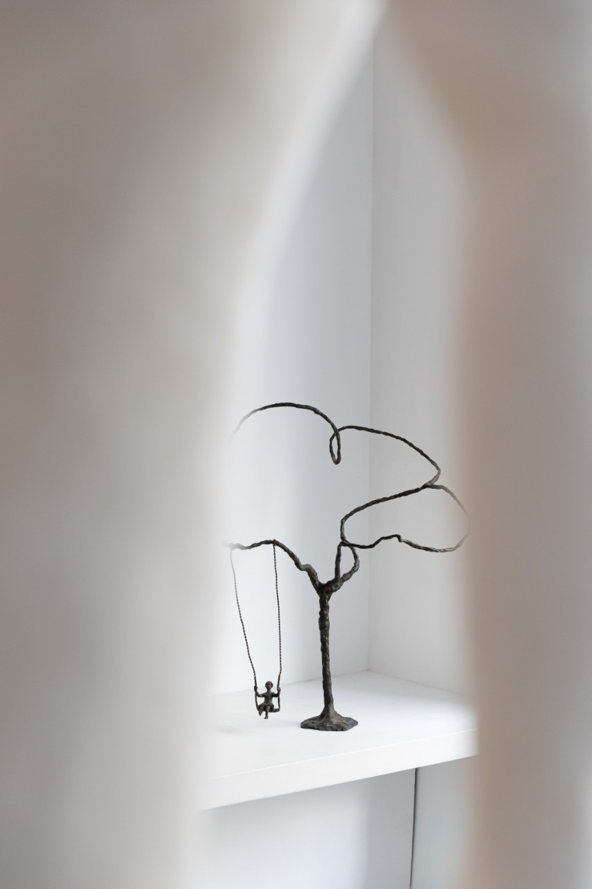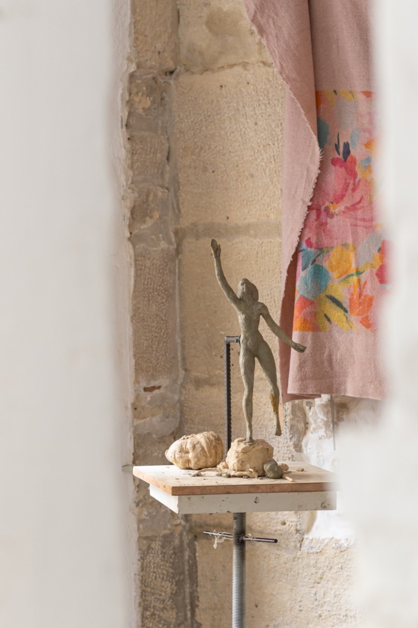 这种感知在 Emmanuelle Hoppenot de Guittaut 的雕塑作品中找到了自然的回响。她的作品与系列一同呈现,形成对话。她原本是一名心理学家,后成为雕塑家,同样关注“临界”——那些即将倾斜的、抵抗的、悬而未决的状态。她的赤陶与青铜雕塑仿佛被一种无形的气息贯穿,立于平衡的边缘,处在疆界地带,稳定之中孕育着变化的可能。
