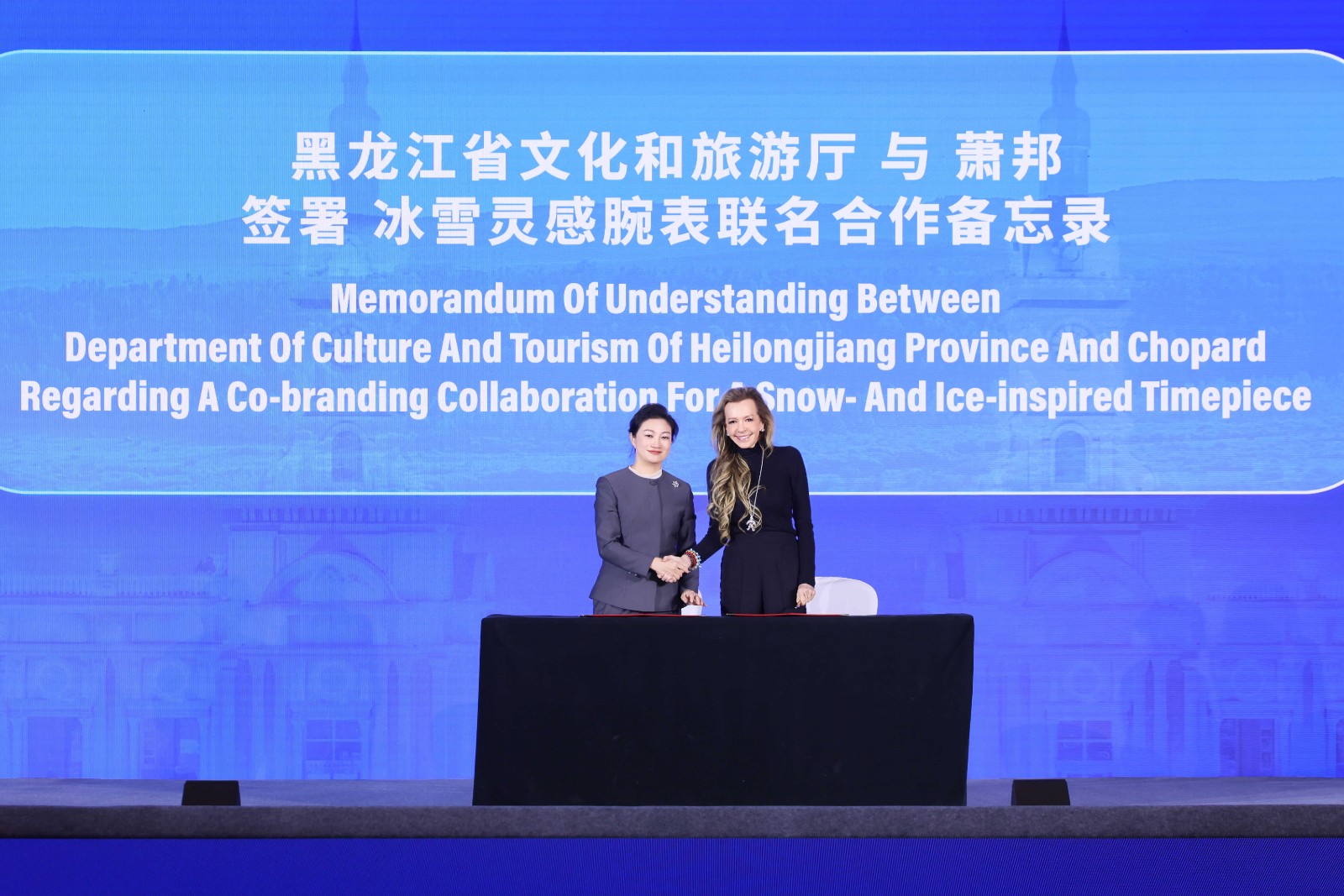 2025年12月16日,在“世界旅游经济论坛·黑龙江2025”论坛上,哈尔滨市荣膺联合国旅游组织授予的“世界冰雪旅游卓越城市”称号,Chopard萧邦联合总裁兼艺术总监卡罗琳·舍费尔(Caroline Scheufele)作为特邀嘉宾发表致辞,彰显了Chopard萧邦与哈尔滨之间的又一文化共融。延续这份冬日灵感与灵动妙想,Chopard萧邦还将呈献一款以哈尔滨冰雪文化为灵感的Happy Sport系列限量时计臻作,以高级制表卓艺将转瞬即逝的雪花之美凝于腕间,方寸之上雪花翩跹不息,自由精神永驻,致敬冰雪之美的永恒诗意。