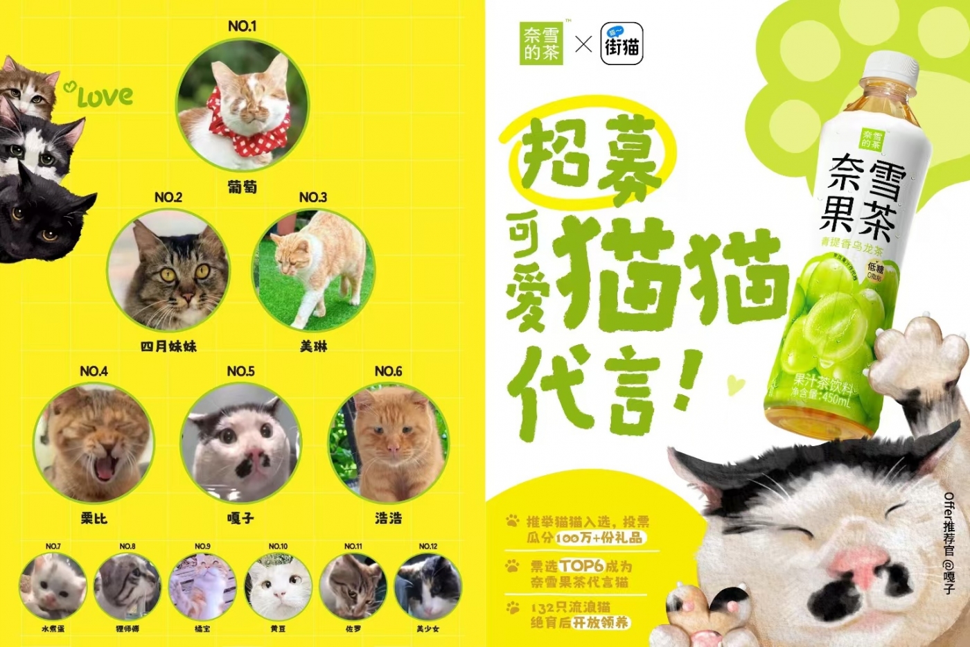 奈雪的茶:招募猫猫代言人