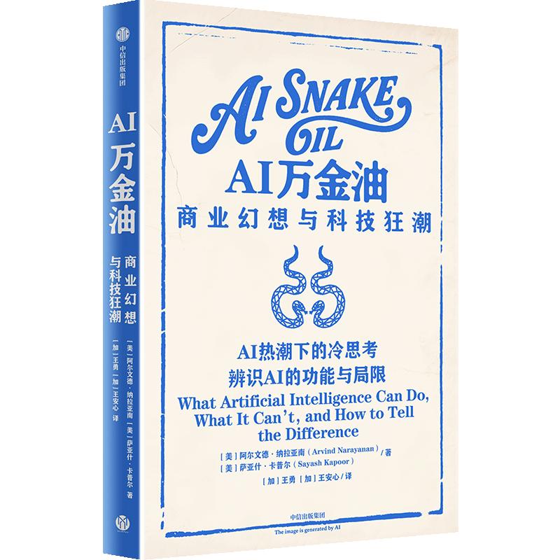 本书由普林斯顿大学计算机科学教授阿尔文德·纳拉亚南和普林斯顿大学计算机科学博士萨亚什·卡普尔合著,两位作者都是《时代》周刊“全球AI领域最具影响力100人”获得者。纳拉亚南不仅是计算机科学专家,还担任普林斯顿大学信息技术政策中心主任。新作《AI万金油:商业幻想与科技狂潮》旨在对AI在全球范围内的迅速崛起进行清晰而深入的阐述,既承认其变革性潜力,又批判性地反思当前不断加剧的夸大宣传、误用现象以及潜在风险。