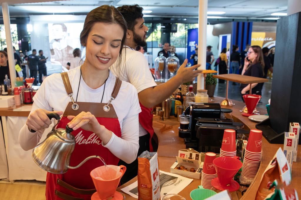 巴西圣保罗的街头,总带着一股炽热的气息。第四届圣保罗咖啡节甫一开幕,熙攘人潮涌入展馆。空气里弥漫着烘焙豆的醇香,同时裹挟着一种“与往年不同”的新意。在入口处的一个展台前,Cafiero公司的创始人Paola Veloso Campolina正展示一款咖啡浸泡袋。她将小巧的纸袋放入玻璃杯中,注入热水,不到半分钟,一杯散发果香与坚果气息的咖啡便完成了,升腾的热气引得年轻观众纷纷举起手机拍摄。
